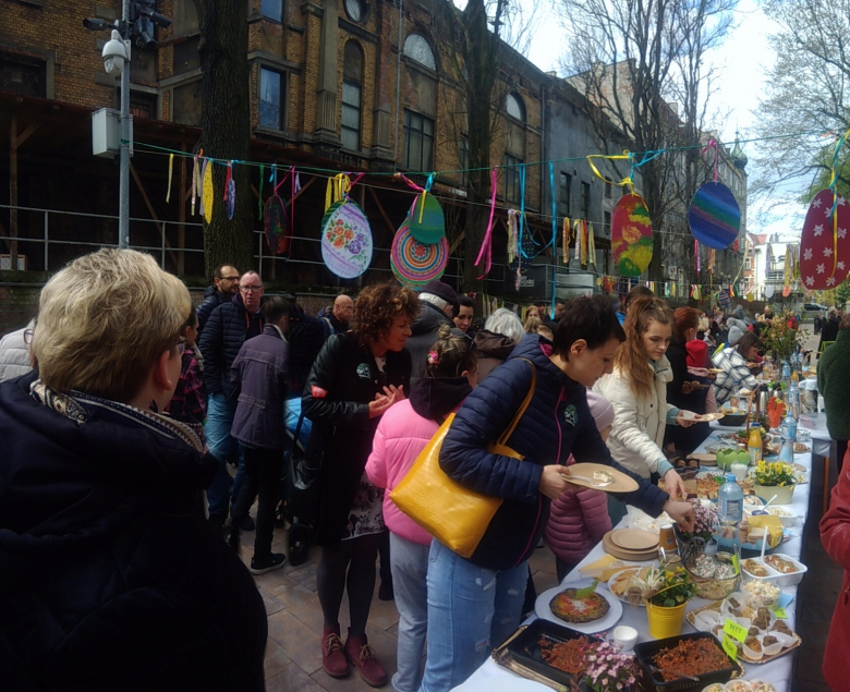 Społecznymi siłami przygotowano posiłki, stoły, dekoracje po to, by pokazać, że oddolne działania integracyjne mają sens. Przy poniedziałkowym świątecznym stole słuchać było rozmowy z różnych językach: od śląskiego po ukraiński.