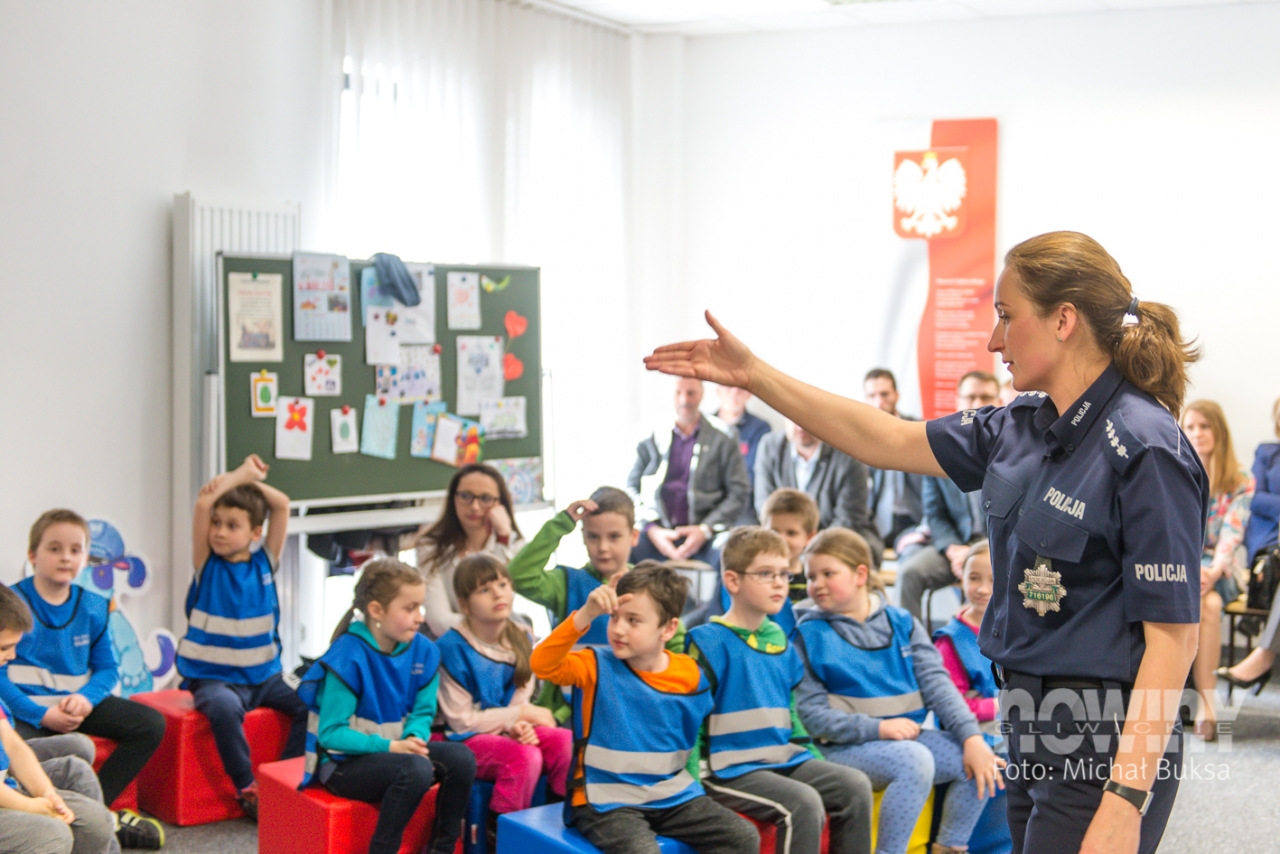 - Takie gwiazdy ma tylko 700 dzieci w Polsce – mówi Katarzyna Wosik, a dzieci słuchają, zaintrygowane. - Kiedy policjant zobaczy, że ją macie, będzie wiedział, że znacie już zasady bezpieczeństwa.