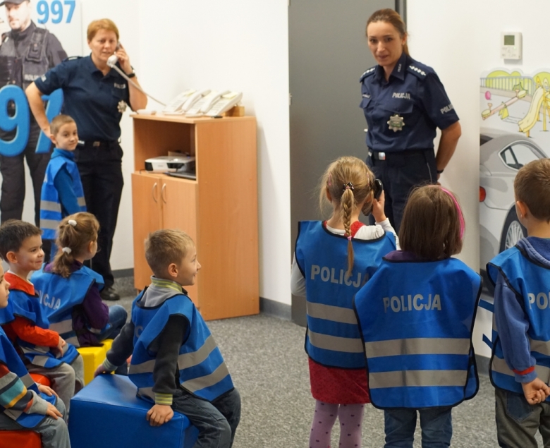 Dzieci muszą wybrać numer telefonu, pod który należy zgłosić wyżej wymienione zdarzenia – i to dosłownie, bo otrzymują bezprzewodową słuchawkę. Kiedy dzwonią, w drugiej części sali odzywa się odpowiedni aparat. Odbiera policjantka (raz w roli swojej, innym razem, na przykład, dyspozytora pogotowia) i przeprowadza z dzieckiem poważną, profesjonalną rozmowę – taką, jaką przeprowadza się podczas prawdziwego zgłoszenia. Dzięki temu maluchy uczą się, jak zawiadamiać o zdarzeniu, na co zwracać uwagę, jakie informacje podawać. I przede wszystkim, że telefon na policję, pogotowie czy straż pożarną to nie żarty.