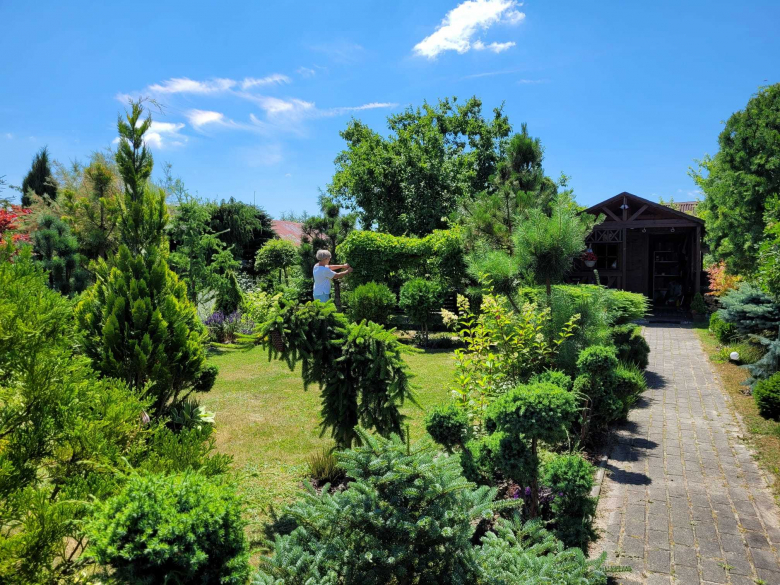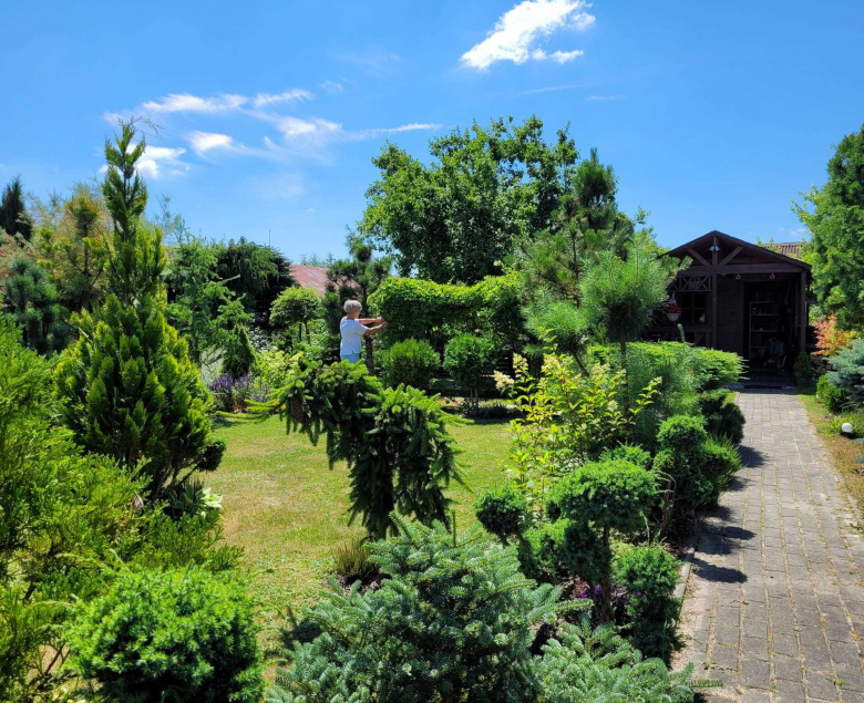 Po sąsiedzku w ogrodzie pracują Ewa z mężem. Działka wygląda jak mały las – co krok rośnie pieczołowicie wypielęgnowany iglak.