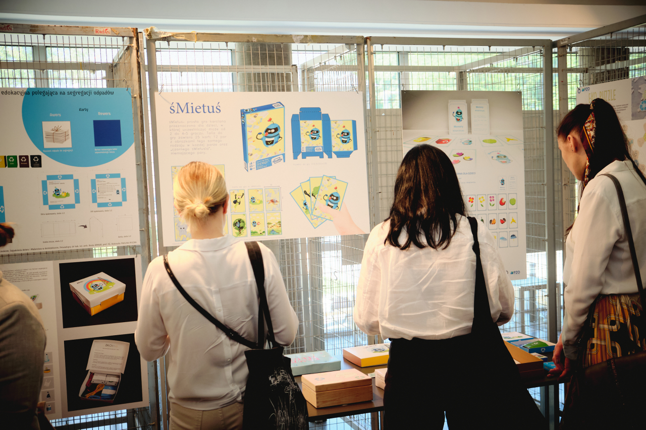 W ramach drugiej edycji współpracy na przełomie 2021/2022 r., studenci Wydziału Architektury Katedry Sztuk Pięknych i Projektowych wykonali prace projektowe i studialne w ramach kolejnego projektu naukowo – badawczego, który odnosił się do rozwiązań graficznych i przestrzennych w obszarze zagadnień związanych z ekologią oraz wiedzą o sposobach segregacji i recyklingu w 4 nowych kategoriach: grafiki edukacyjne, ilustracje rymowanek o śMietku, kodeks dobrych praktyk ekologicznych oraz planszowe i karciane gry edukacyjne. Efekty dużego zaangażowania pracowników PZO Sp. z o.o., opiekunów naukowych i ich studentów mogli Państwo zobaczyć na wystawie prac studenckich rozpoczętej wernisażem w Galerii Wydziału Architektury, która trwała od 23 czerwca do 11 lipca 2022 r. W projekcie wzięło udział 156 studentów.