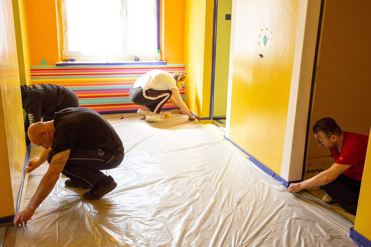 Prace w Gliwickiej Przystani 35 idą pełną parą. Aktualnie trwa wykańczanie pomieszczeń. Wolontariusze i pracownicy firm wspierających projekt malują ściany. To dzięki nim w Gliwickiej Przystani 35 używane są wysokiej jakości materiały, w tym farby i sprzęt do szybkiego, natryskowego malowania ścian wewnętrznych. W pracach uczestniczą między innymi pracownicy gliwickiej firmy Radan.