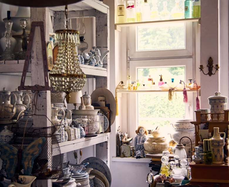 W sklepie króluje ceramika – wazy, talerze, figurki aniołów – ale uwagę przyciągają też lampy i kinkiety. – Przy wyborze asortymentu kieruję się sercem. Nie patrzę na sygnatury czy wartość rynkową, tylko na to, czy przedmiot ma w sobie coś pięknego. To estetyka jest dla mnie najważniejsza – zaznacza Hania.